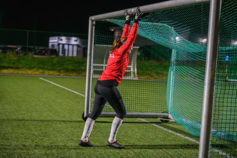 Så er det lett oppvarming mens laglederen går resolutt til verket og fikser mål på banen.