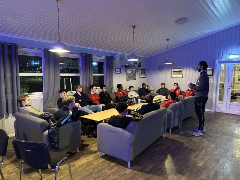 Dagen startet med en egen samling for Berg IL-trenerne, der Olsen og Sedgwic gjennomgikk hvordan Sarpsborg 08 jobber med forberedelser til kamp og trening. Her fikk våre trenere nyttige innblikk i struktur, metodikk og hvordan tydelige rammer bidrar til bedre utvikling hos spillerne.